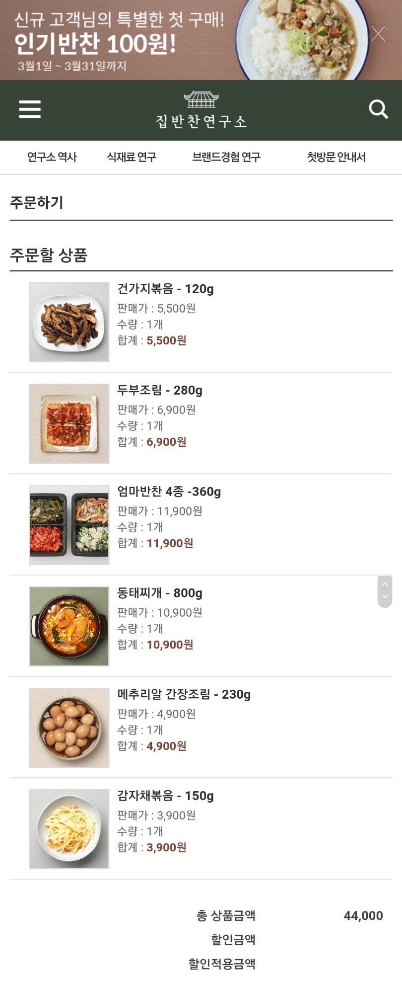 반찬 하나에 100원! 솔깃한 할인에 바로 가입하였는데요~