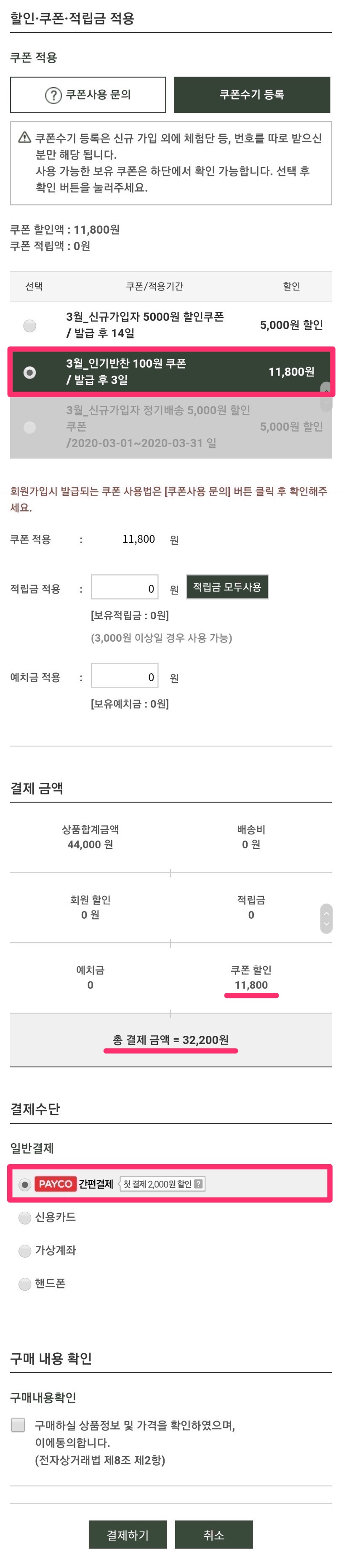 11,800원이 할인되어 총 상품 금액은 32,200원이 되었네요!