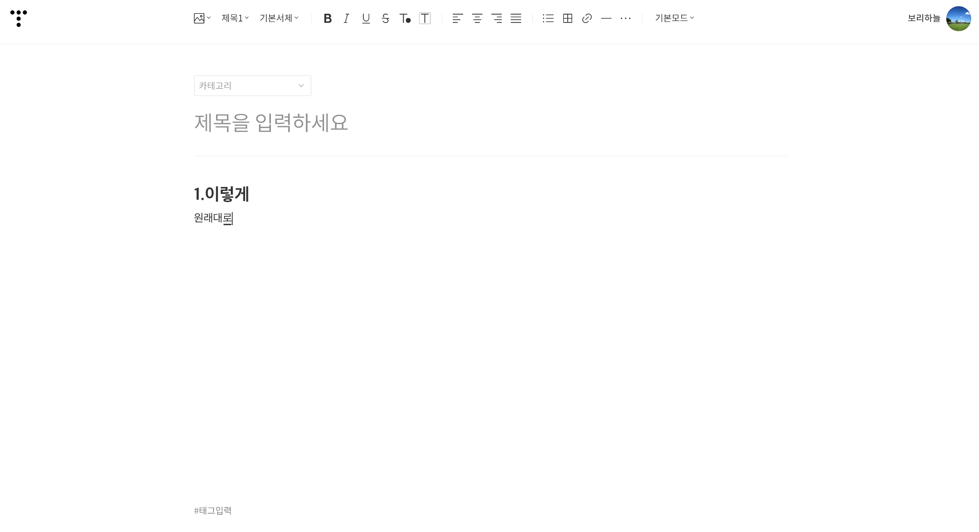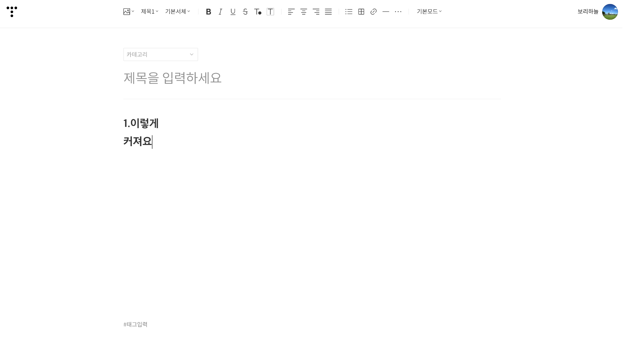 따라서 아래와 같이 두껍고 큰 글자로 작성되어 HTML 모드로 가서 수정하곤 했는데요.. (서식 변경하기 귀찮아서..)