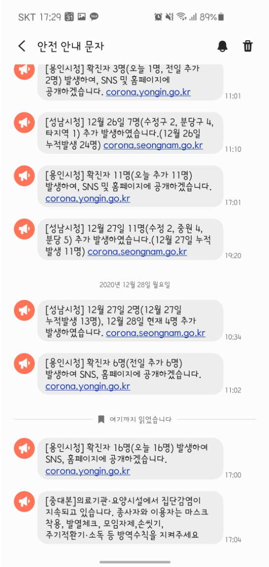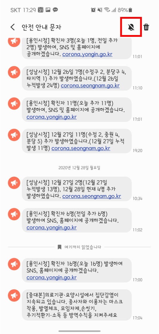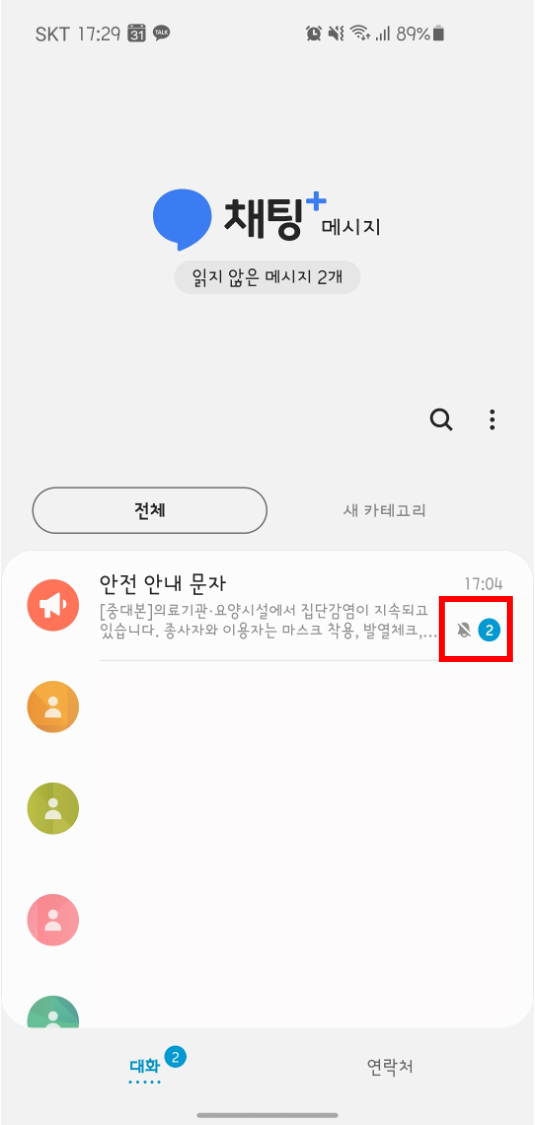 안전 안내 문자 리스트로 들어갑니다.